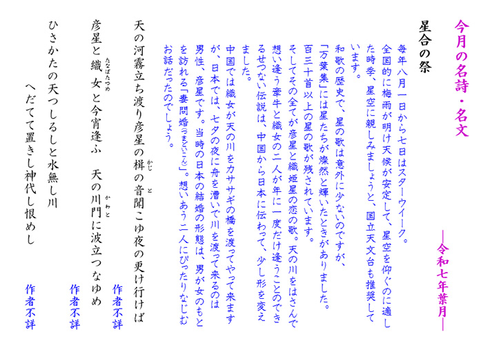 今月の名詩・名文